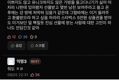 남친한테 선물 받고 ㅃ친 여ㄷ생