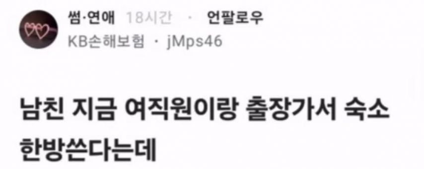 남친이 여직원이랑 출장가서 한방 쓴다는데 ㄷㄷㄷ