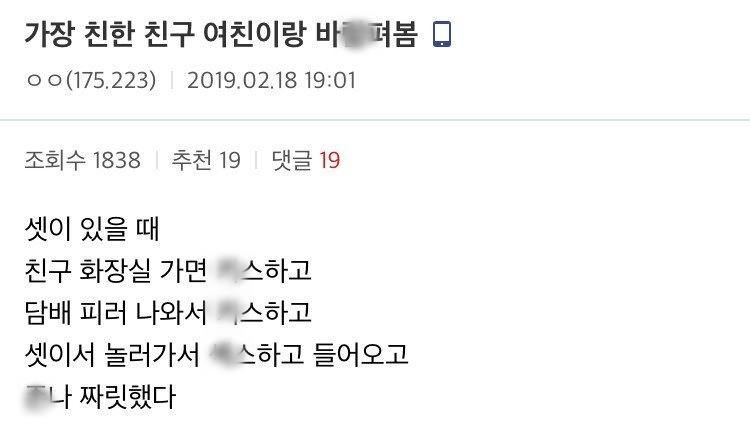 가장 친한 친구 여친이랑 바ㄹ 펴봄