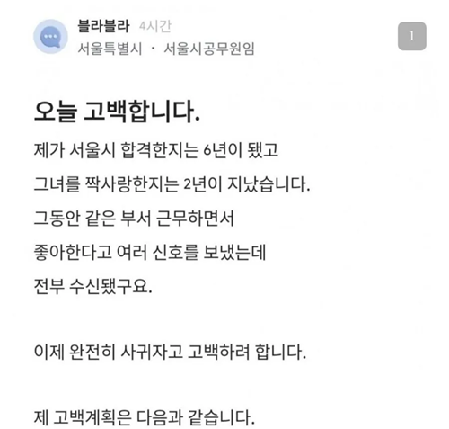 서울시 공무원, 고백 박으러 간 결과(+후기)